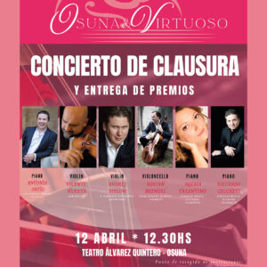 El próximo 12 de abril tendrá lugar el 𝗰𝗼𝗻𝗰𝗶𝗲𝗿𝘁𝗼 𝗱𝗲 𝗰𝗹𝗮𝘂𝘀𝘂𝗿𝗮 𝗱𝗲𝗹 𝗙𝗲𝘀𝘁𝗶𝘃𝗮𝗹 𝗢𝘀𝘂𝗻𝗮 & 𝗩𝗶𝗿𝘁𝘂𝗼𝘀𝗼, un evento internacional que nació gracias al hermanamiento entre Osuna y el Festival Virtuoso...