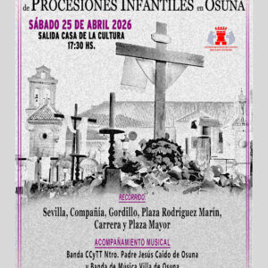 El sábado 25 de abril se podrá disfrutar por las calles de Osuna del XXV Certamen de Procesiones Infantiles. El certamen comenzará en la Casa de la Cultura a las...
