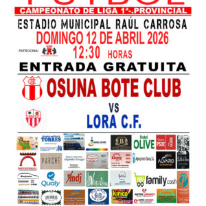 El domingo 12 de abril a las 12:30 h. el Osuna Bote Club se enfrentará al Lora C. F. en el Estadio Municipal de Deportes Raúl Carrosa. 𝗘𝗡𝗧𝗥𝗔𝗗𝗔 𝗚𝗥𝗔𝗧𝗨𝗜𝗧𝗔. Nuestro...