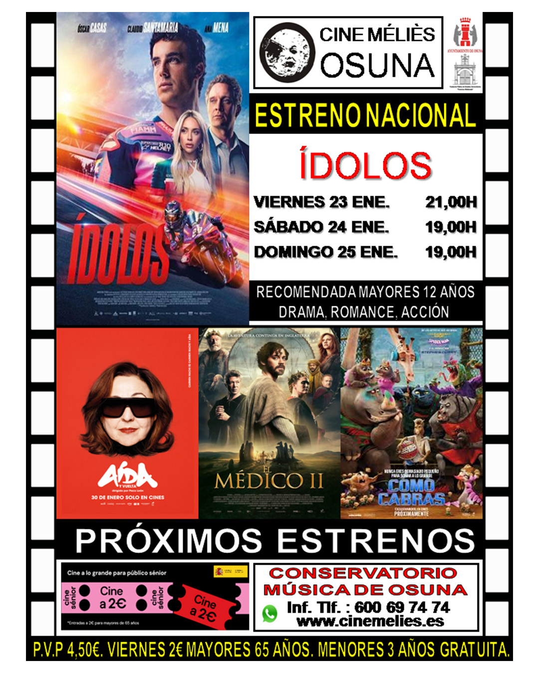 Esta es la película de la que podrás disfrutar en el cine de Osuna durante los próximos días. Ídolos (2026) dirigida por Mat Whitecross y con el reparto de Óscar Casas y Ana Mena.