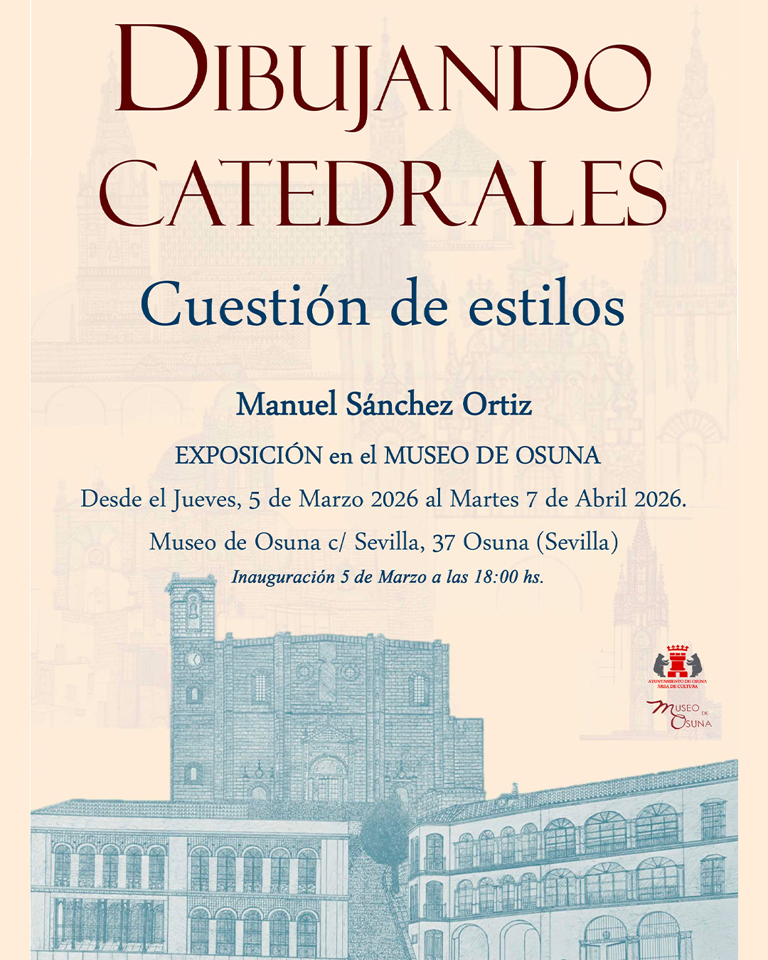 El museo de Osuna acogerΓ‘ desde el jueves 5 de marzo hasta el martes 7 de abril la exposiciΓ³n Dibujando Catedrales – CuestiΓ³n de estilos de Manuel SΓ‘nchez Ortiz.