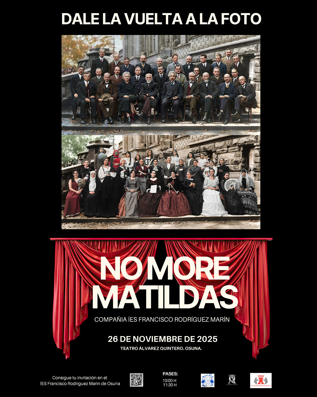 El próximo 26 de noviembre en horario matinal, la Compañía IES Francisco Rodríguez Marín representará la obra «No more Matildas, dale la vuelta a la foto» en el Teatro Municipal Álvarez Quintero.