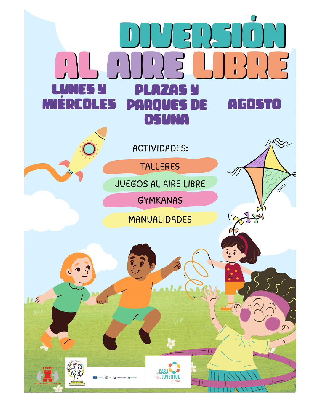 🧩🏏🎨 Un año más, las delegaciones municipal de Juventud y Participación Ciudadana del Ayuntamiento de Osuna han organizado para el mes de agosto el programa de dinamización infantil «Diversión al aire libre», que se celebrará todos los lunes y miércoles en las plazas y parques de nuestro municipio.