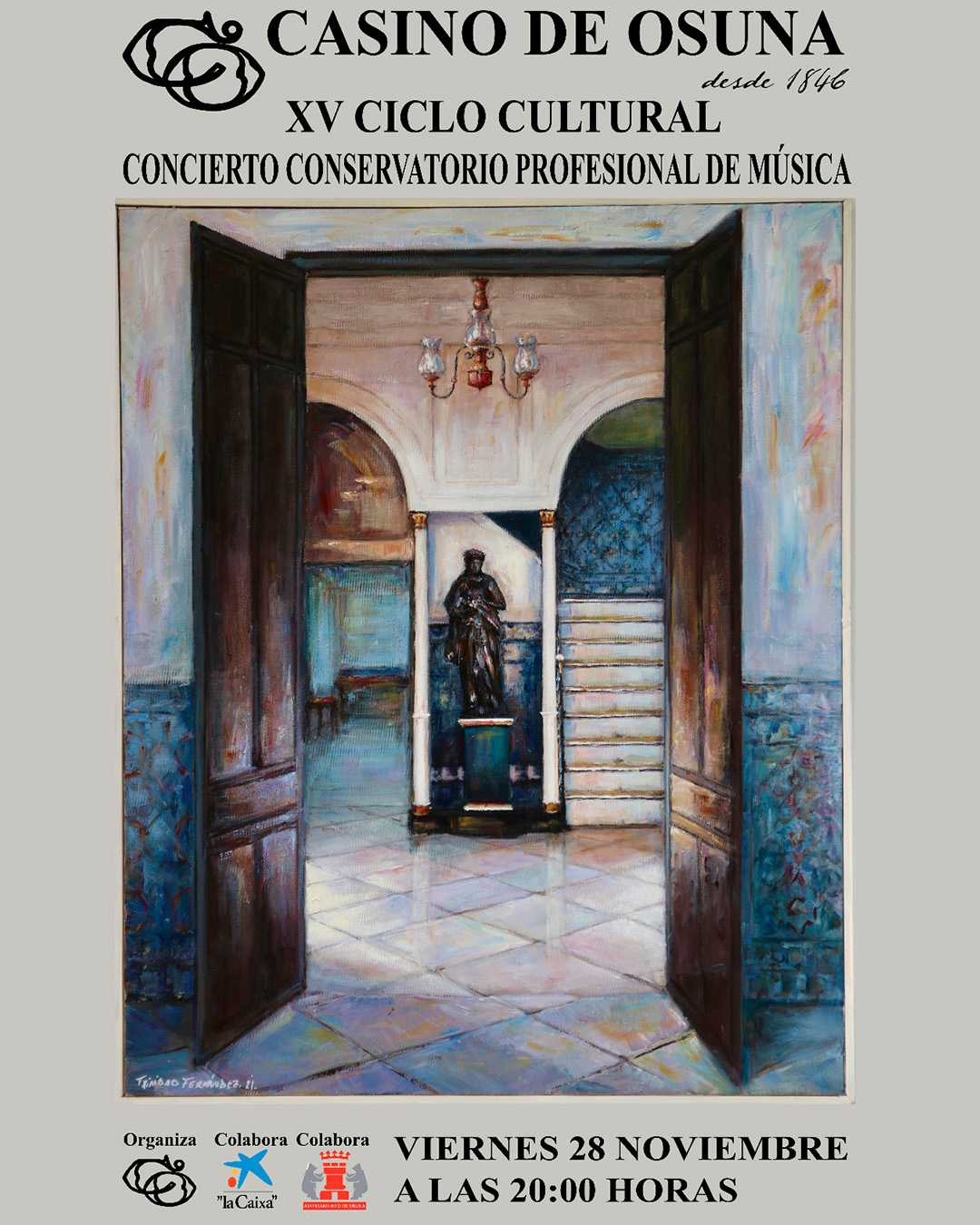 🎼🎹 𝗫𝗩 𝗖𝗜𝗖𝗟𝗢 𝗖𝗨𝗟𝗧𝗨𝗥𝗔𝗟 𝗗𝗘𝗟 𝗖𝗔𝗦𝗜𝗡𝗢 𝗗𝗘 𝗢𝗦𝗨𝗡𝗔 Enmarcado en el XV Ciclo Cultural del Casino, este espacio acogerá hoy viernes, 28 de noviembre, un extraordinario concierto del Conservatorio Profesional de Música de Osuna. Viernes 28 de noviembre 20:00 h. Casino de Osuna BuscarBuscar Noticias Recientes Osuna se une a la App SetJetters: Descubre los escenarios de cine en el destino Lo nuevo de Bayona se rueda en este encantador pueblo de Sevilla: Osuna El Teatro Municipal Álvarez Quintero acogerá el espectáculo «Credo» de Cantores de Híspalis Guía para la Solicitud de Rodajes en Osuna Fondos europeos transferidos al Gobierno de la Nación posibilitan la bioclimatización y energía fotovoltaica en el IES Sierra Sur Archives noviembre 2025 enero 2025 mayo 2024 abril 2024 enero 2024 noviembre 2023 marzo 2023 junio 2022 julio 2019 abril 2019 marzo 2019 Categories Actualidad Patrimonio y Cultura Sin categoría Sin categorizar Turismo de Cine