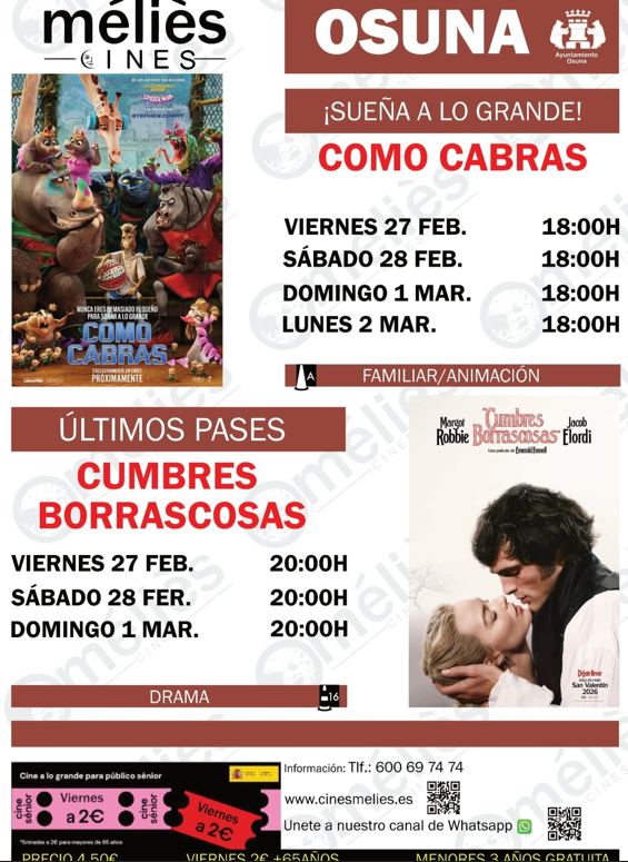 Estas son las pel铆culas de las que podr谩s disfrutar en el cine de Osuna este fin de semana: Como cabras (2026) y los 煤ltimos pases de Cumbres borrascosas (2026).