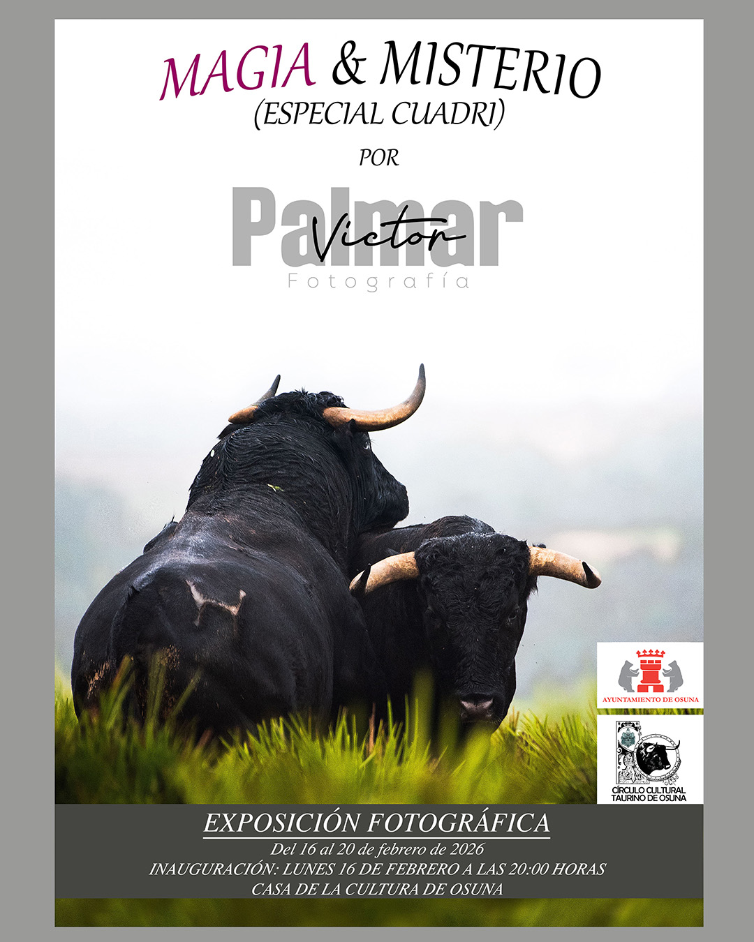 El lunes 16 de febrero a las 20:00 h. se inaugurará en la Casa de la Cultura de Osuna la exposición fotográfica Magia & Misterio (Especial Cuadri) de Victor Palmar.
