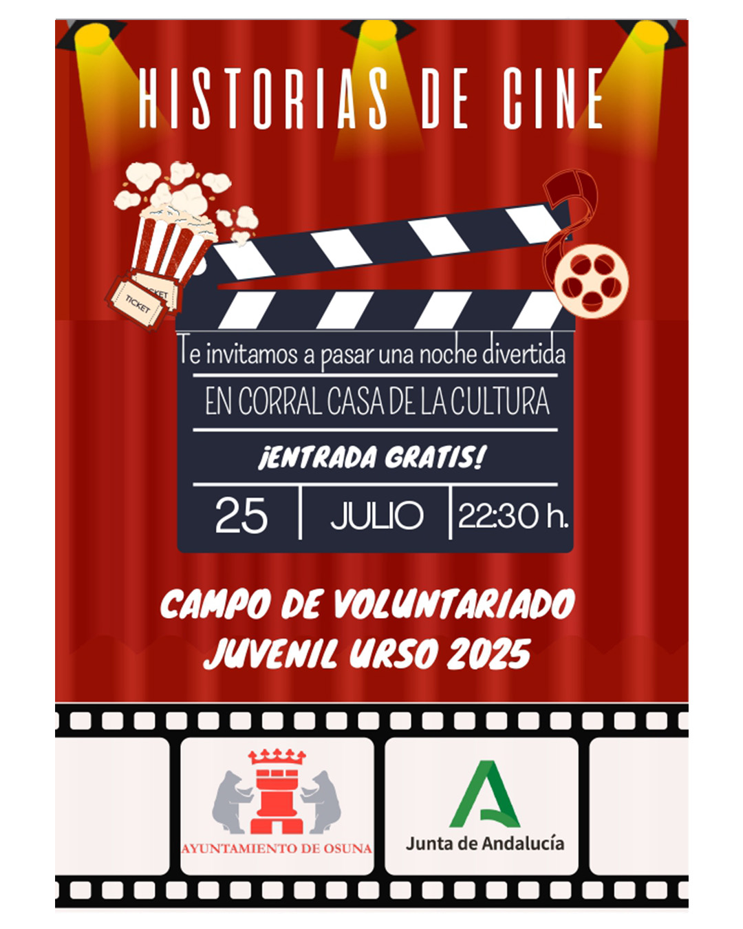 Los voluntarios y voluntarias y usuarios y usuarias del 𝗖𝗮𝗺𝗽𝗼 𝗱𝗲 𝗩𝗼𝗹𝘂𝗻𝘁𝗮𝗿𝗶𝗮𝗱𝗼 U𝗿𝘀𝗼 𝟮𝟬𝟮𝟱, nos presentarán el viernes 25 de julio la obra «Historias de Cine», en el Corral de la Casa de la Cultura.