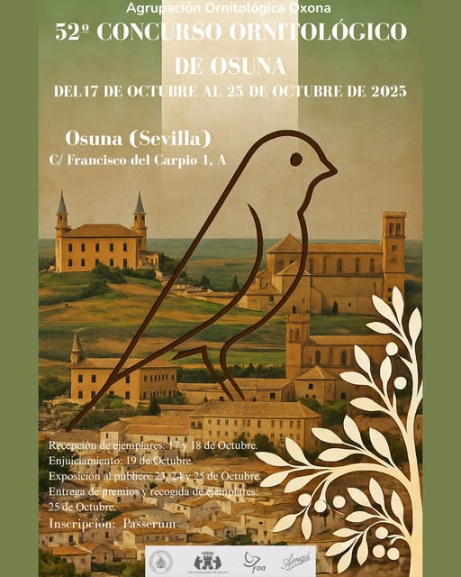 La Agrupaci贸n Ornitol贸gica Oxona ha organizado, con el patrocinio del Ayuntamiento de Osuna, el 52潞 Concurso Ornitol贸gico de Osuna.