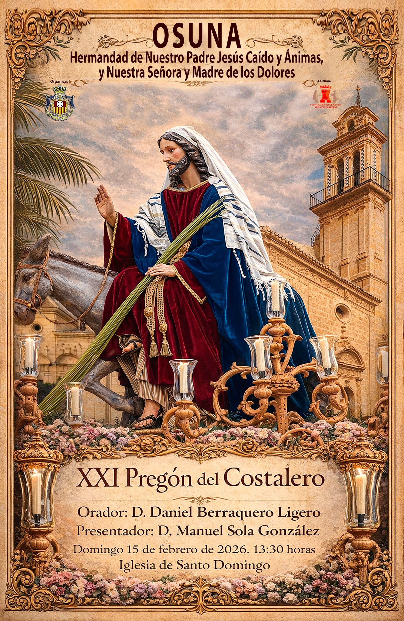 🤝 El Pregón del Costalero está organizado por la Hermandad de Nuestro Padre Jesús Caído y Ánimas y Nuestra Señora y Madre de los Dolores y cuenta con la colaboración del Ayuntamiento de Osuna.