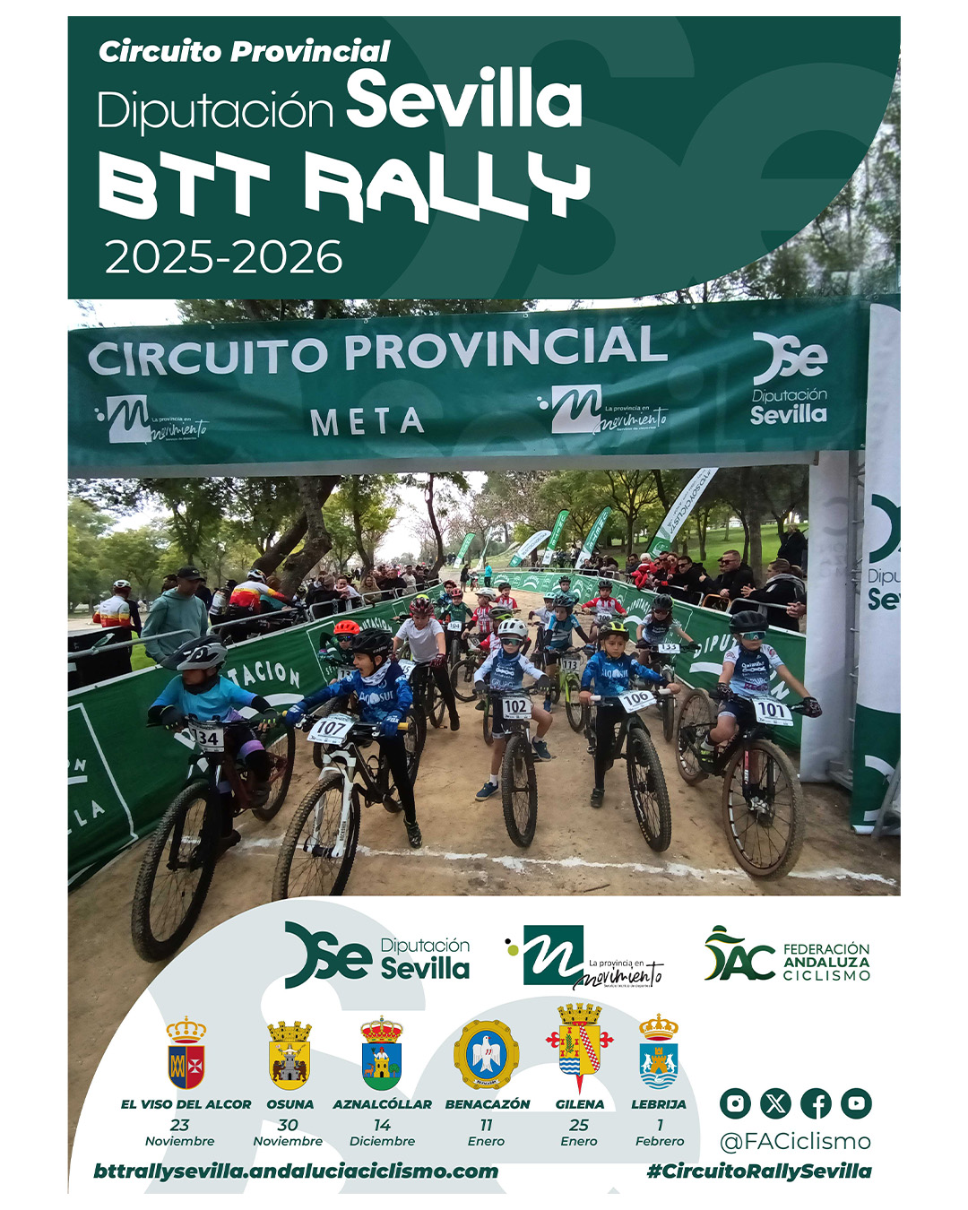 📝 Para poder participar en este rally es necesaria la inscripción a través de este enlace https://andaluciaciclismo.com/…/32257-CIRCUITO… que estará habilitado hasta el jueves 27 de noviembre a las 15h, siendo totalmente gratuita para todas las categorías. El día de la prueba se podrán llevar a cabo in situ en horario de 8 a 9 de la mañana. Únicamente podrán participar los nacidos en 2019 o años anteriores.