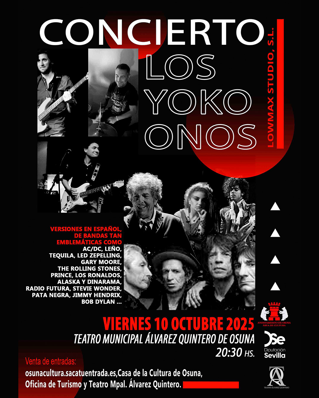El viernes 10 de Octubre se podrá disfrutar en el Teatro Municipal Álvarez Quintero del concierto de Los Yoko Onos.