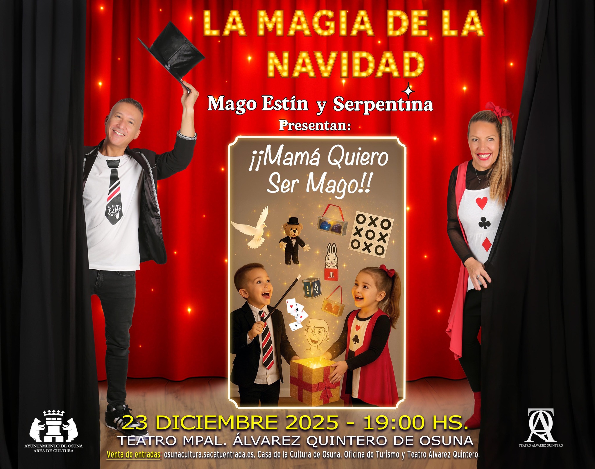 El Mago Estín y Serpentina presentarán el día 23 de diciembre en el Teatro Municipal Álvarez Quintero de Osuna el espectáculo La Magia de la Navidad ¡¡Mamá quiero ser mago!!