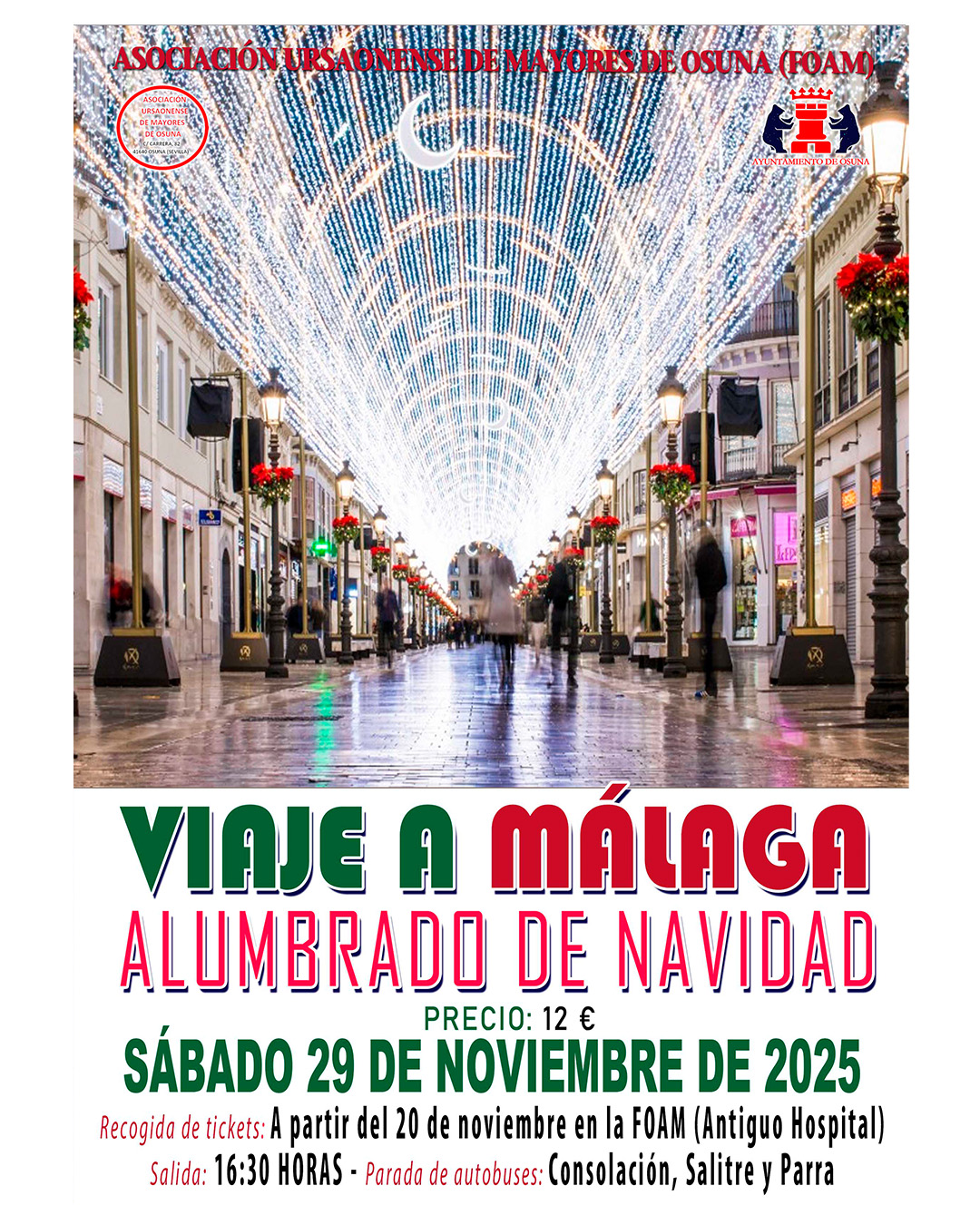 馃殞馃巹馃挕 饾棭饾棞饾棓饾棟饾棙 饾棓 饾棤脕饾棢饾棓饾棜饾棓 饾棖饾棦饾棥 饾棢饾棓 饾棛饾棦饾棓饾棤 El s谩bado 29 de noviembre puedes viajar a M谩laga para ver el alumbrado navide帽o con la Asociaci贸n Ursaonense de Mayores de Osuna (FOAM). Recogida de tickets en la sede de la FOAM (Antiguo Hospital). BuscarBuscar Noticias Recientes Osuna se une a la App SetJetters: Descubre los escenarios de cine en el destino Lo nuevo de Bayona se rueda en este encantador pueblo de Sevilla: Osuna El Teatro Municipal 脕lvarez Quintero acoger谩 el espect谩culo 芦Credo禄 de Cantores de H铆spalis Gu铆a para la Solicitud de Rodajes en Osuna Fondos europeos transferidos al Gobierno de la Naci贸n posibilitan la bioclimatizaci贸n y energ铆a fotovoltaica en el IES Sierra Sur Archives noviembre 2025 enero 2025 mayo 2024 abril 2024 enero 2024 noviembre 2023 marzo 2023 junio 2022 julio 2019 abril 2019 marzo 2019 Categories Actualidad Patrimonio y Cultura Sin categor铆a Sin categorizar Turismo de Cine
